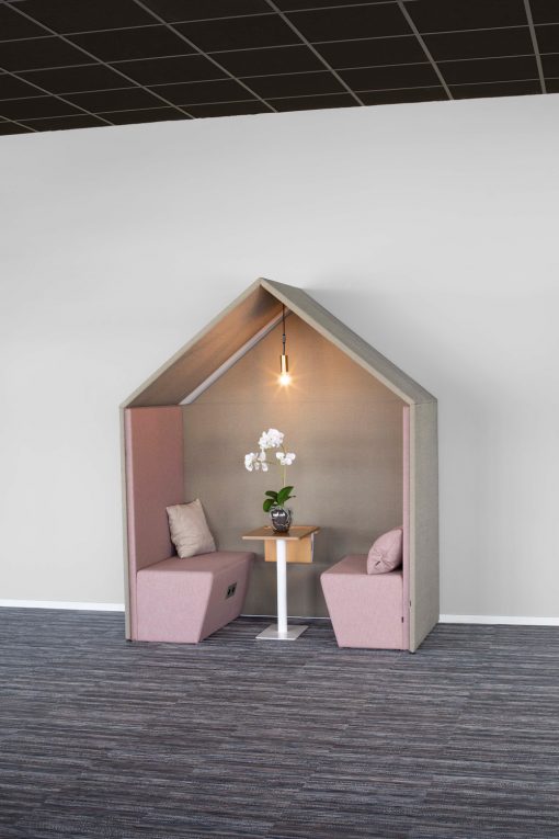 La petite maison “Wood hut” est une petite cabine acoustique. Elle peut avoir différentes fonctions selon vos envies et est personnalisable. Selon ses diverses compositions elle peut devenir : un poste de travail individuel, une petite salle de réunion, ou bien une zone de relaxation avec les sièges associés par exemple. Son système d’isolation acoustique vous permet de bénéficier d’un confort optimal. Wood hut est disponible dans divers coloris, plusieurs dimensions et possède les certifications SS-EN 1023 Essai de stabilité, ISO 354 Absorption et SS 25269.